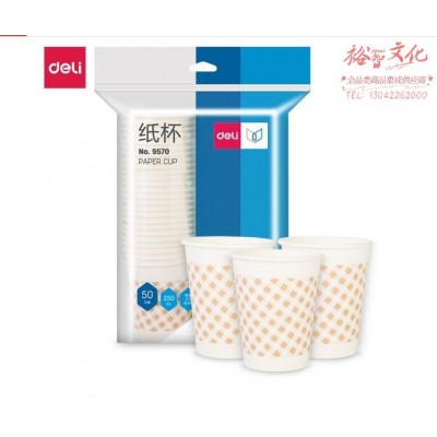 得力(deli)250ml(9盎司)加厚一次性水杯/纸杯 50只装 9570SKU:yzwhyp876185