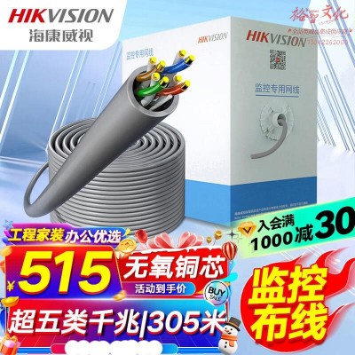 海康威视超五类网线工程级无氧铜箱线CAT5e类百兆网络过福禄克双绞线监控家装305米/箱 1LN5E-E/ESKU:yzwhyp876193