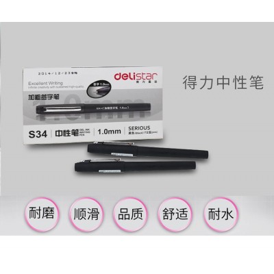 得力(deli)1.0mm加粗中性笔水笔签字笔 黑色12支/盒S34