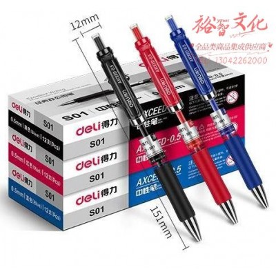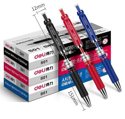 得力S01中性笔0.5mm弹簧头(蓝)(12支/盒)SKU:yzwhyp876310