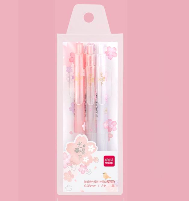 得力A580学生按动中性笔0.38mm全针管(黑)(3支/袋)SKU:yzwhyp876451