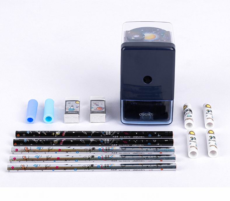 得力68909中国航天文具套装(蓝)(盒)学生开学文具套装 学生大礼包5件套(削笔机/铅笔/橡皮擦/铅笔套/握笔护套)SKU:yzwhyp876460