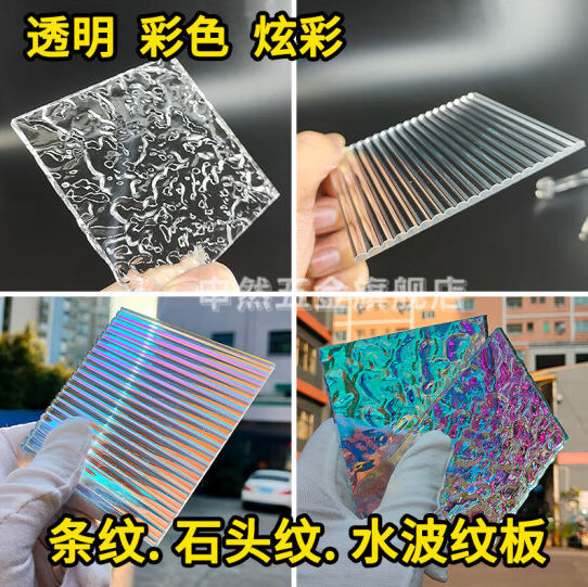 亚克力板透明炫彩长虹条纹亚克力板定制柜门水波纹石头纹有机玻璃SKU:yzwhyp876478