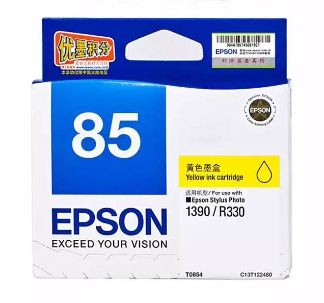 爱普生(EPSON)T0854(C13T122480) 黄色墨盒 (适用于:Stylus Photo1390;R330)SKU:yzwhyp876549