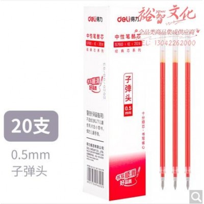 得力S760子弹头中性笔芯0.5mm(红) 20支盒SKU:yzwhyp876589