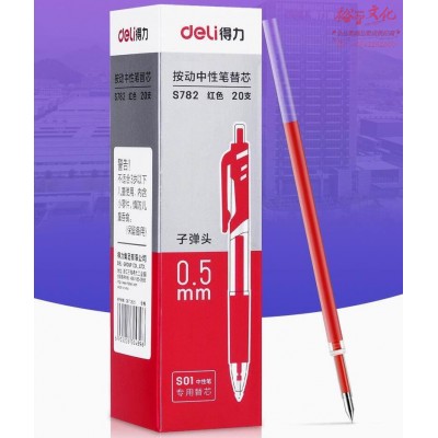 得力S782按动中性笔替芯0.5mm子弹头(红)SKU:yzwhyp876605