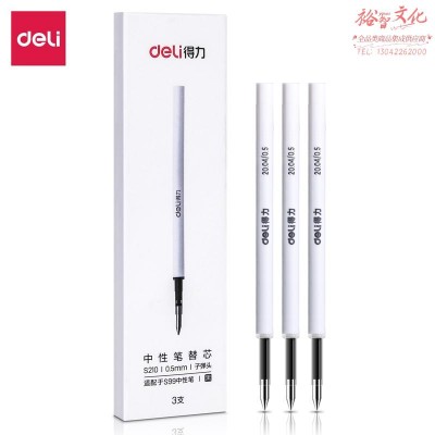 得力S210转动中性笔替芯0.5mm子弹头(黑)(3支/盒)SKU:yzwhyp876624