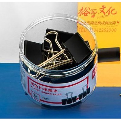得力8561-1#黑色长尾票夹51mm(筒装)(黑)(12只/筒)SKU:yzwhyp876727