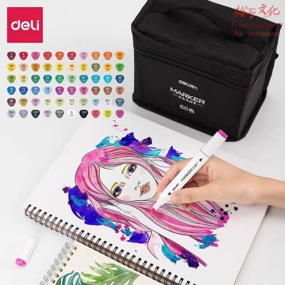 得力70807-60色布袋装白色三角杆彩色马克笔(混)(60色/袋)SKU:yzwhyp876753