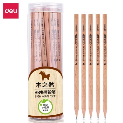 得力S950-HB书写铅笔(原木色)(72支/筒)素描绘图铅笔筒装学生儿童书写铅笔