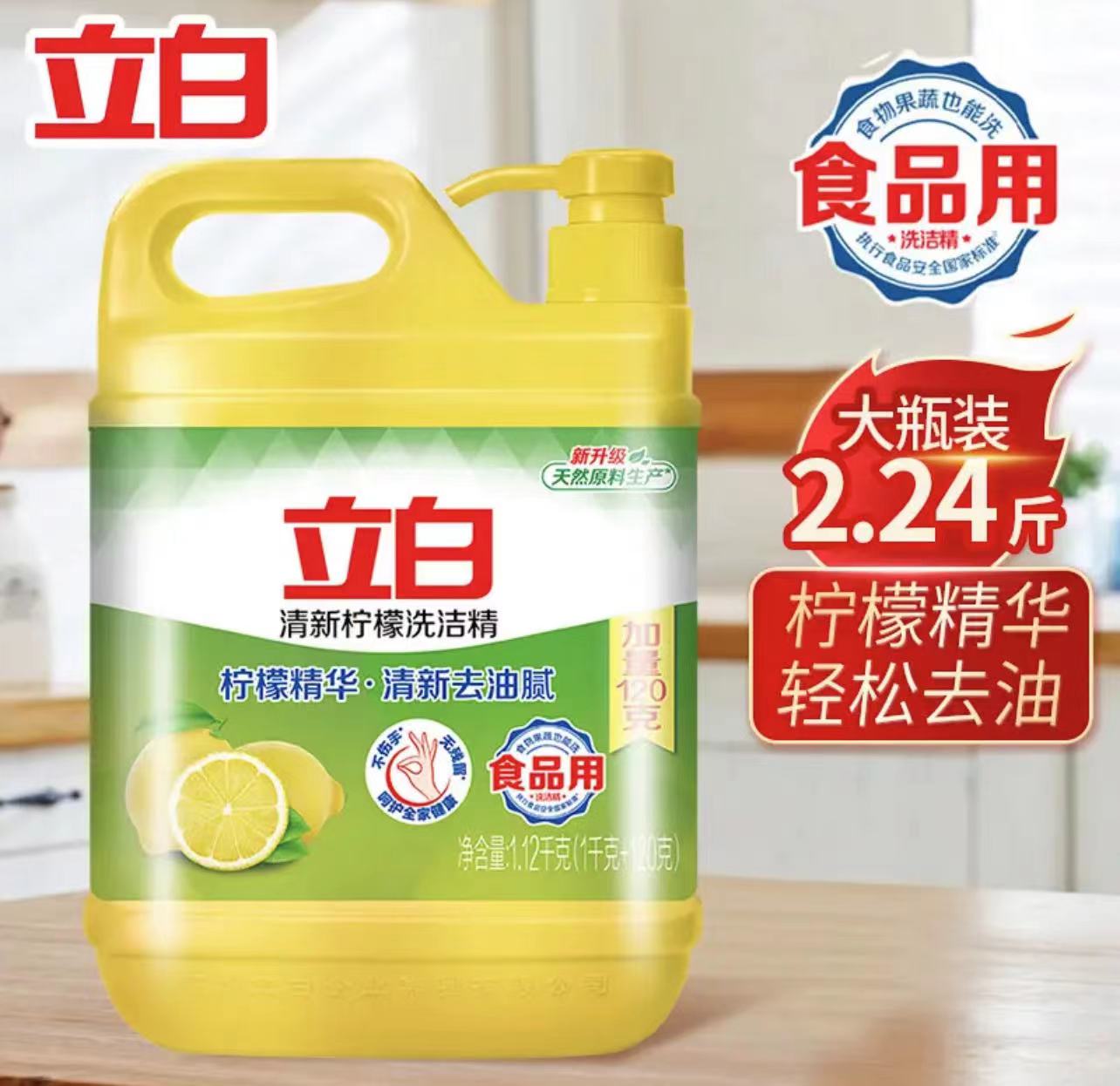 立白柠檬洗洁精1.12kg食品用厨房餐厅去油不伤手加量大桶家庭装高效去油洗碗餐具洗涤灵 清新柠檬SKU:yzwhyp876852