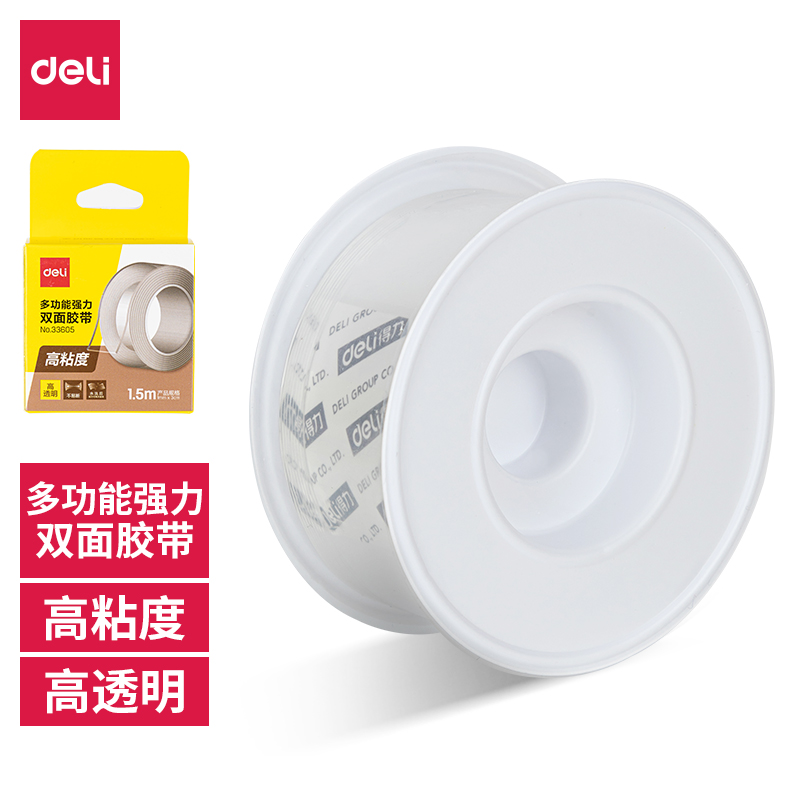 得力33605双面透明胶带(3cm*1.5m*1mm)(透明)(1卷/盒)SKU:yzwhyp876958