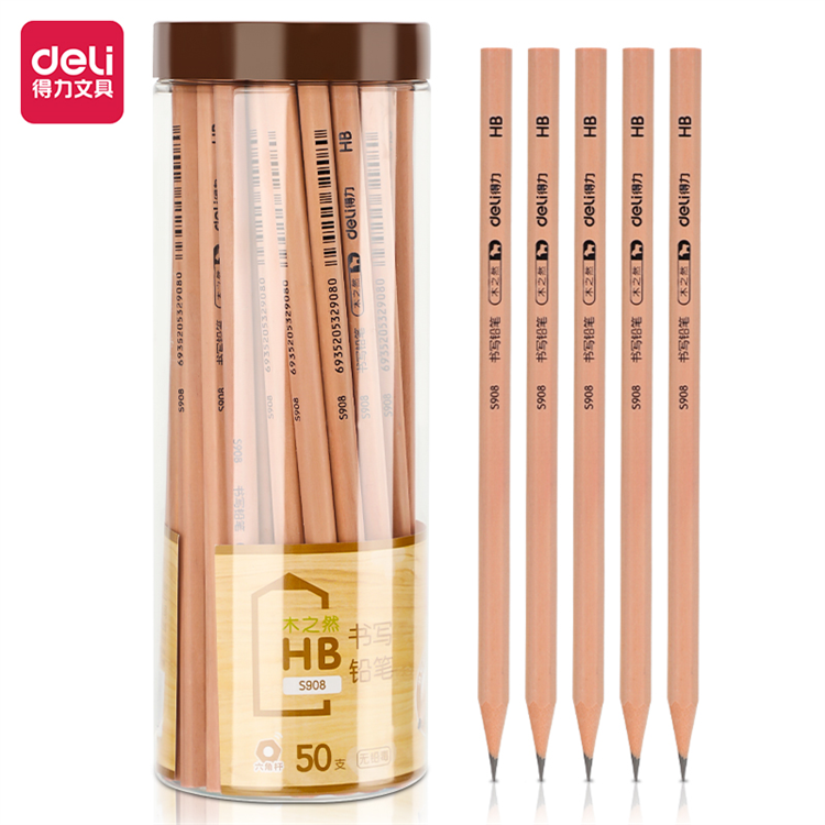 得力S908-HB书写铅笔(原木色)(50支/筒)SKU:yzwhyp876966