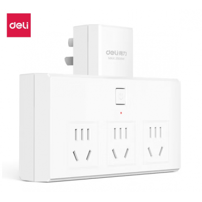得力27083 转换器_3组_彩盒装(白)(只)新国标安全插座面板 无线插座/转换插头/电源转换器/一转多插座