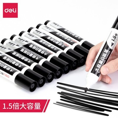 得力S518白板笔(黑)(10支/盒)粗头白板笔 可擦易擦 办公教学会议黑色