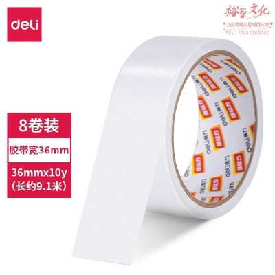 得力30415棉纸双面胶带36mm*10y*80um(白)(8卷/筒)SKU:yzwhyp877075