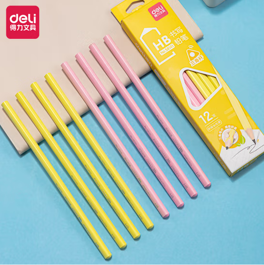 得力58141_三角杆HB书写铅笔12支(浅红)SKU:yzwhyp877129