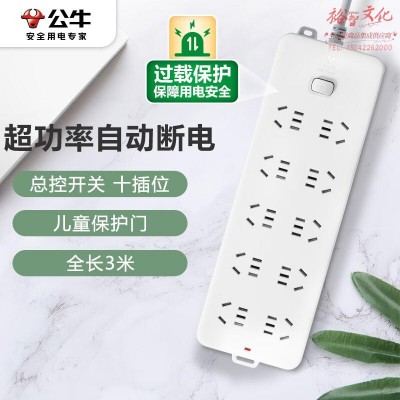 公牛(BULL)过载保护插座/插线板/插排/排插/接线板/拖线板 10位总控全长3米 GN-218SKU:yzwhyp877329