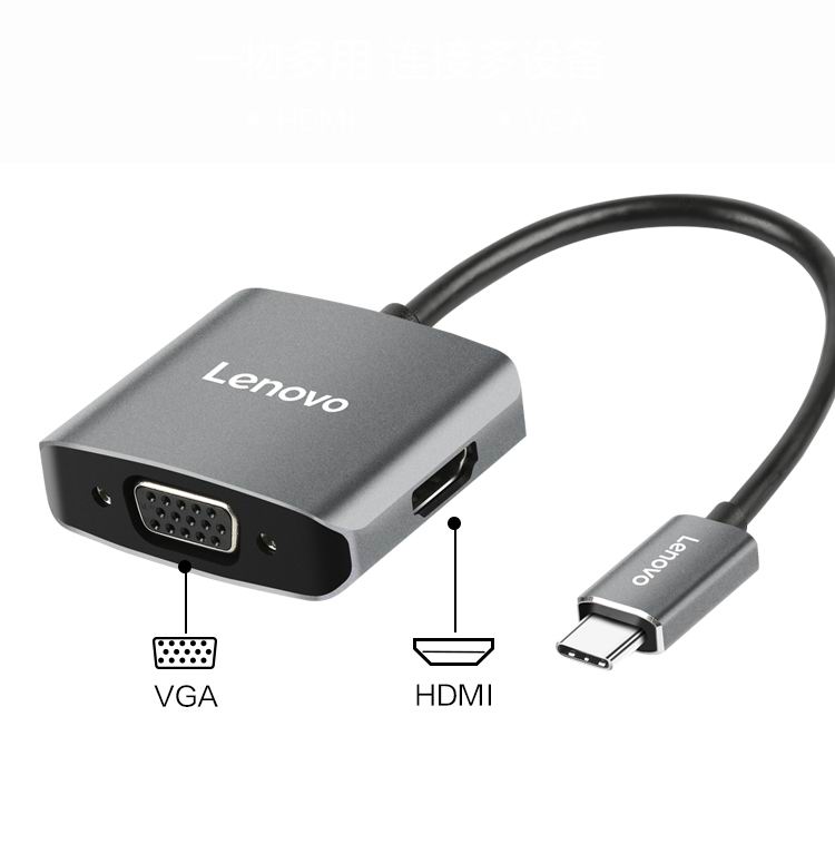 联想(Lenovo)原装 Type-C扩展坞转接头 USB-C分线器 F1-C02【Type-C转VGA HDMI】SKU:yzwhyp877339