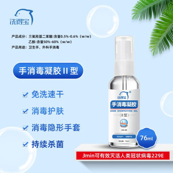 洗得宝 手消毒凝胶II型 速干凝胶含酒精 消毒液免洗洗手液 76ml/瓶SKU:yzwhyp877423