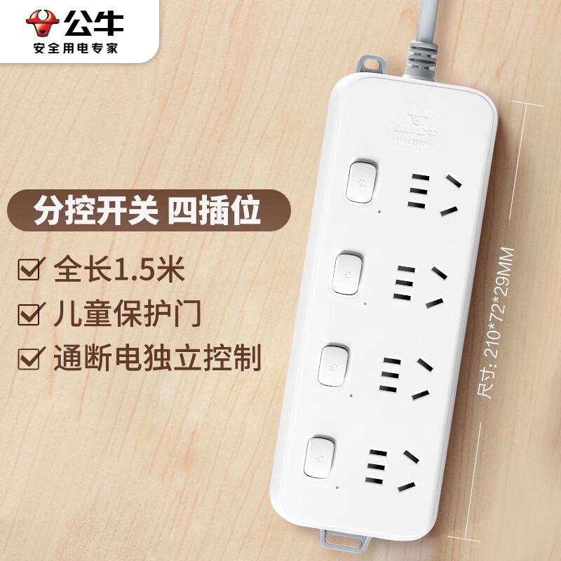 公牛(BULL)分控插座/插线板/插排/排插/接线板/拖线板 GN-B3043 4位分控全长1.5米 独立开关SKU:yzwhyp877483