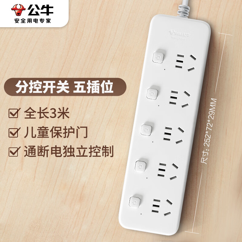 公牛(BULL)新国标插座/插线板/插排/排插/接线板/拖线板 5位分控全长3米 GN-B2053SKU:yzwhyp877487