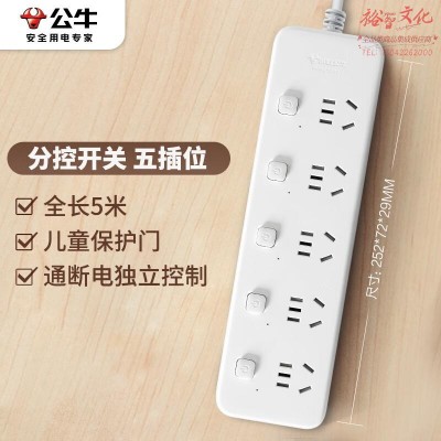 公牛(BULL)新国标分控插座/插线板/插排/排插/接线板/拖线板 5位分控全长5米 GN-B2053SKU:yzwhyp877488