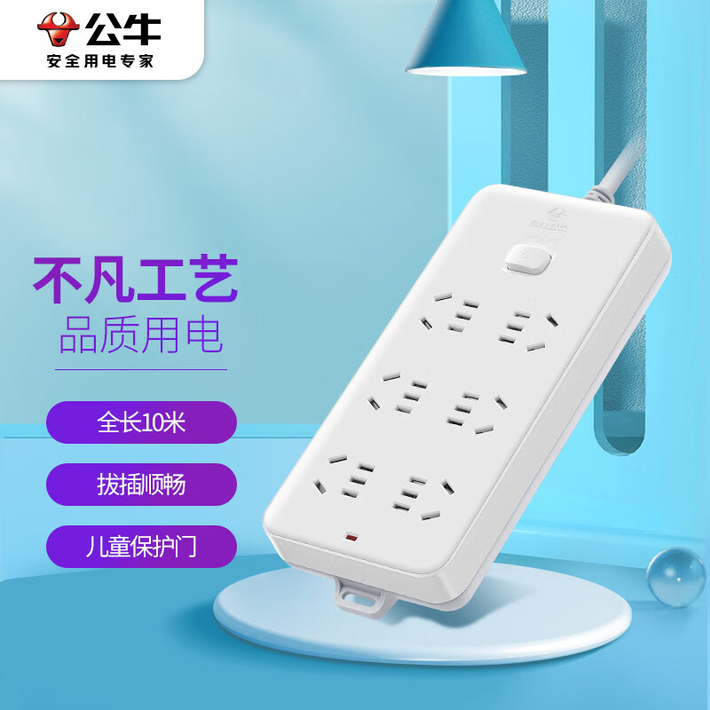首页 > 建筑建材 > 开关插座 > 公牛(BULL) 新国标插座/插线板/插排/排插/接线板/拖线板 6位总控全长10米 GN-109KSKU:yzwhyp877510