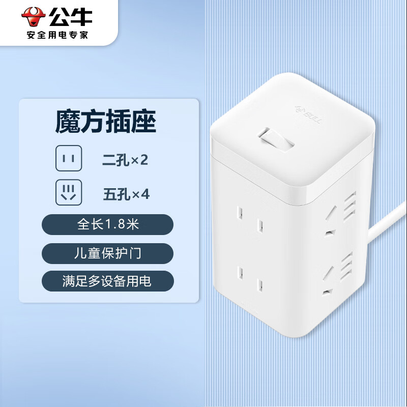 公牛(BULL) 大魔方插座 插线板/插排/排插/接线板/拖线板 GNV-UE2240 白色魔方6位插座全长1.8米SKU:yzwhyp877522