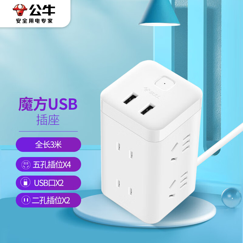 公牛(BULL) 大魔方智能USB插座 插线板/插排/排插/接线板/拖线板 GNV-UU2126 白色魔方USB插座全长3米SKU:yzwhyp877526