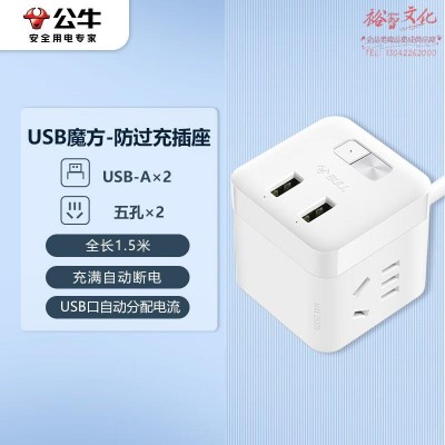 公牛(BULL)自动防过充魔方USB插头/插座/防过充插头 全长1.5米 2孔 2USB自动断电 GNV-UU312TSKU:yzwhyp877527
