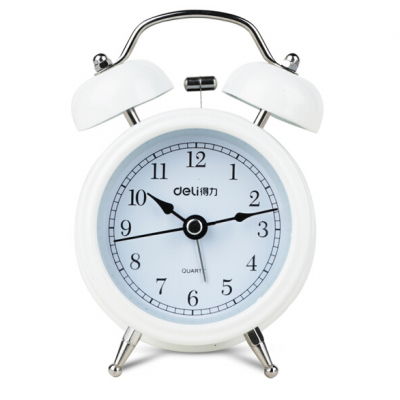 得力9024 闹钟(白色)(只)迷你夜光低噪音闹钟 家庭卧室懒人床头钟钟学生闹钟时钟 开学升学季礼物