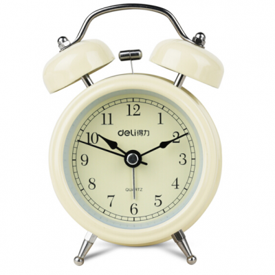得力9024 闹钟(黄色)(只)迷你夜光低噪音闹钟 家庭卧室懒人床头钟钟学生闹钟时钟 开学升学季礼物
