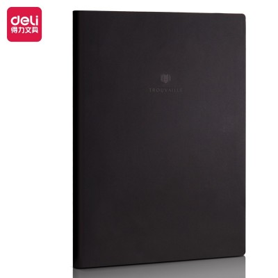 得力3176会议记录本(黑色)(本)皮面本 记事本会议笔记本商务办公学生记事本