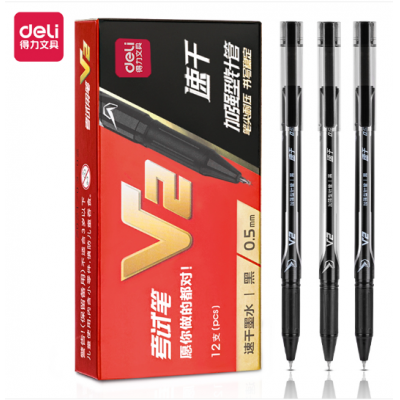 得力V2考试中性笔速干顺滑0.5mm加强型针管(黑)12支/盒