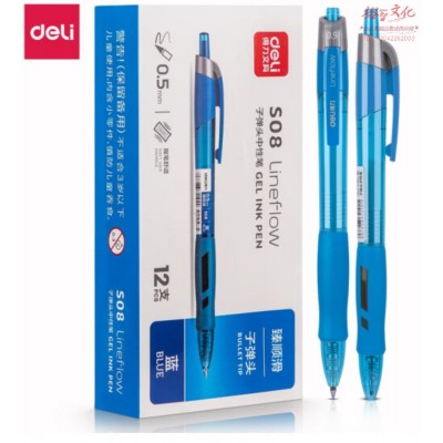 得力S08臻顺滑办公中性笔0.5mm弹簧头(蓝色)(支)SKU:yzwhyp878329