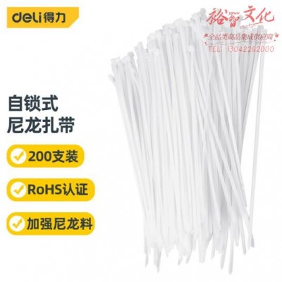 得力(deli) 自锁式尼龙扎带 理线带 扎线 4.0*250mm 白色 200支装SKU:yzwhyp878350