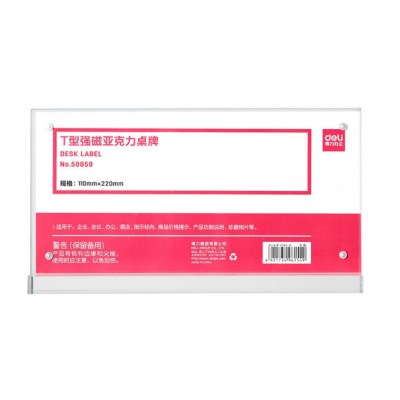 得力(deli)50859T型强磁亚克力桌牌 台卡 单面透明 110*220mm