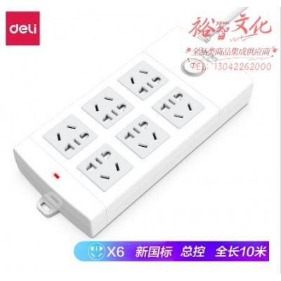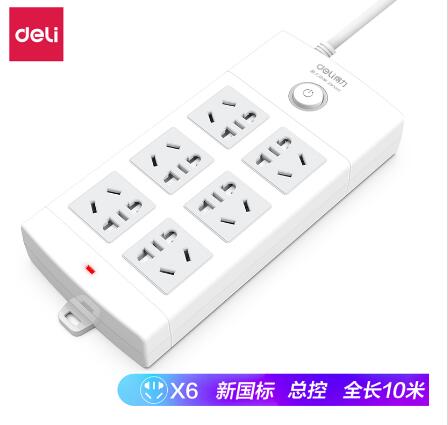 得力18207插座_6组_10米_PVC袋装(白)(只)SKU:yzwhyp878387