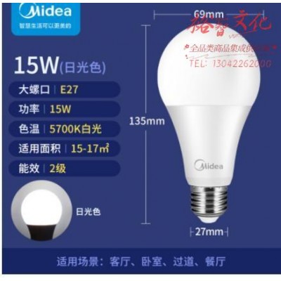 美的(Midea)led灯泡节能E27大螺口螺纹球泡15W正白五只装SKU:yzwhyp878436