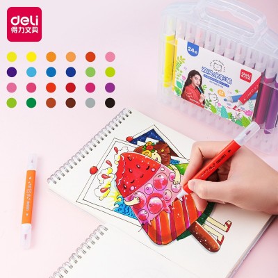 得力70672-24_24色双头水彩笔(混)(盒)水彩笔套装软头儿童幼儿园一年级用双头彩笔