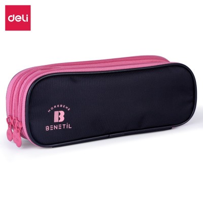 得力66667 笔袋(粉色)(只)多功能大容量笔袋多层铅笔收纳袋高中生中学生笔袋男文具盒女小学生铅笔袋