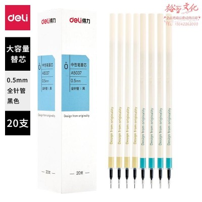 得力A5037中性笔替芯0.5mm全针管(黑)(盒)(20支/盒)SKU:yzwhyp878913