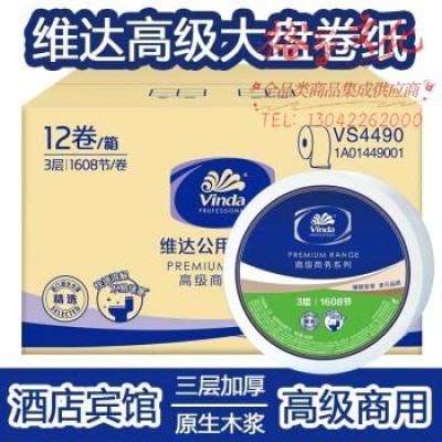 Vinda维达大卷纸VS4490商用大盘手纸12卷三层180米装厕所卫生间用纸巾SKU:yzwhyp879046