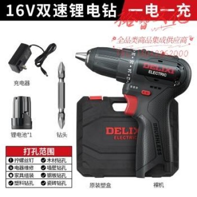 德力西 无刷锂电钻冲击手电钻充电式螺丝刀家用16V双速锂电钻一电一充电SKU:yzwhyp879074