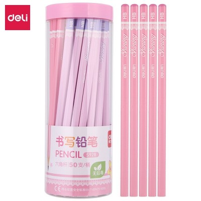 得力 S928 铅笔(粉)(50支/筒) (计价单位:筒)原木椴木印花桶装铅笔HB/2B学生儿童写字笔文具套装练字铅笔 HB原木六角杆