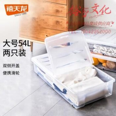 禧天龙床底收纳箱玩具整理箱被子储物箱扁平双开盖带轮子 透明54升2个装SKU:yzwhyp879152