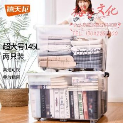 禧天龙加厚衣物收纳箱玩具整理箱书籍储物箱透明带滑轮超大号145升2个装SKU:yzwhyp879153