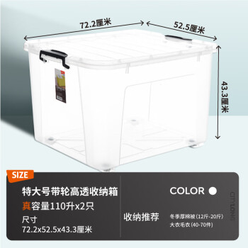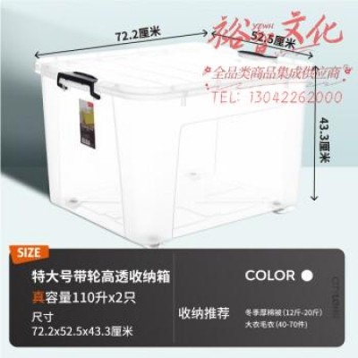 禧天龙加厚塑料衣物收纳箱玩具整理箱储物箱透明带轮 超大号 110升2个装SKU:yzwhyp879157