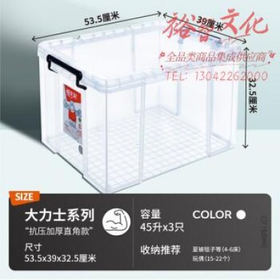 禧天龙大力士加厚直角玩具收纳箱被子衣服储物箱药箱 45升3支装透明SKU:yzwhyp879161